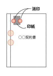 印紙は一回つかったら、再利用はできません。そのため、再利用を防ぐために「消印」を押します。消印は「印紙」と「契約書」にまたがって押します。